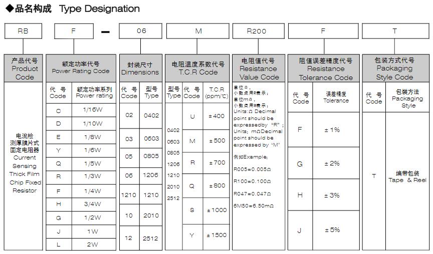 風(fēng)華車規(guī)抗硫化厚膜片式固定電阻器型號命名規(guī)則: