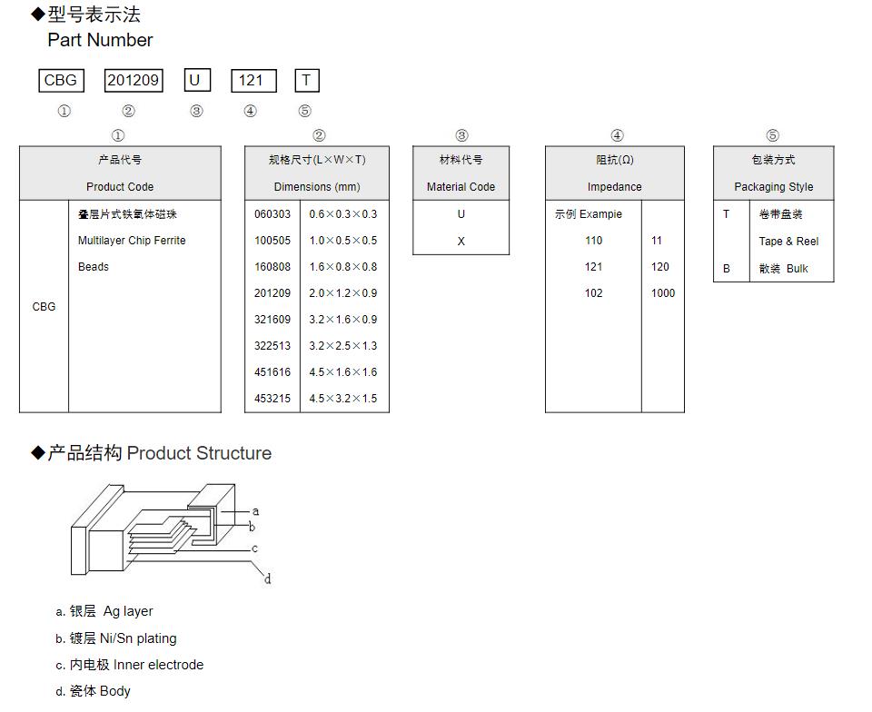 風華高科疊層片式鐵氧體磁珠(CBG)命名規(guī)則: