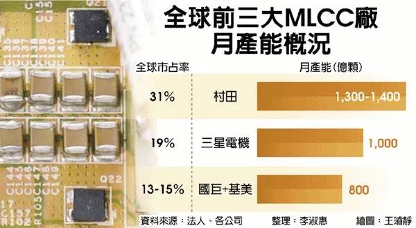 初估大發(fā)新廠滿載稼動之下,兼并估計基美的MLCC產(chǎn)能,新國巨MLCC月產(chǎn)能可望站穩(wěn)1,000億顆,僅越日商村田(Murata)、韓商三星電機(jī)(SEMCO),穩(wěn)居寰球第三大廠。