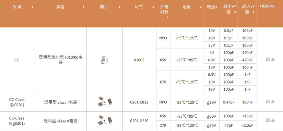 國巨電容常見封裝尺寸有,0201,0402,0603,0805,1206,容量范圍一般在0.5pF~1uF。