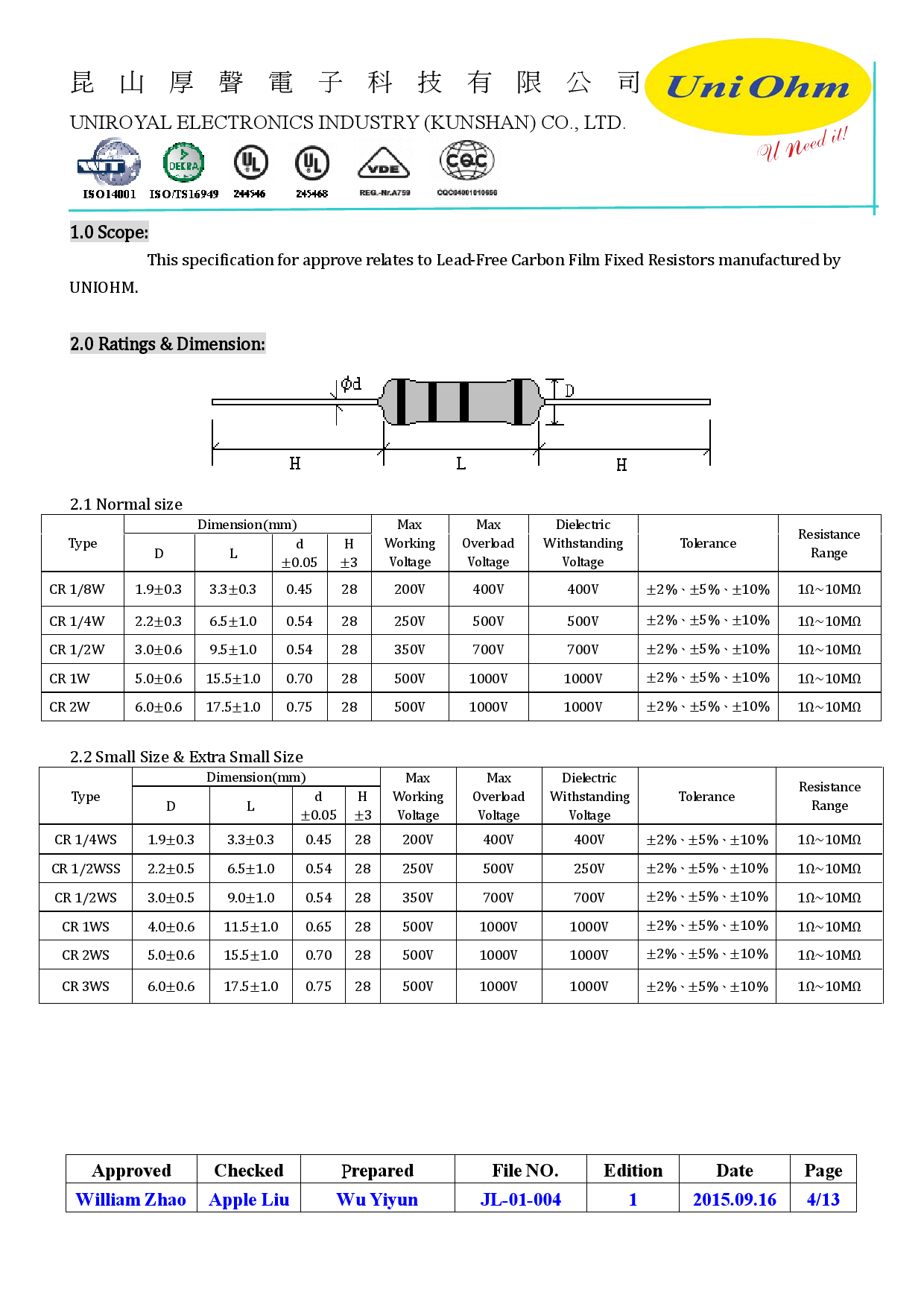 - 上一篇 >: uniohm-厚聲薄膜電阻一級代理商