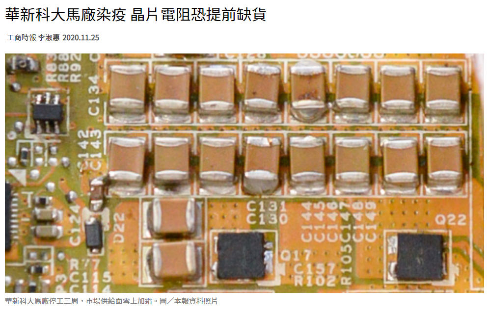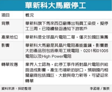 據報道,華新科已通知下游EMS客戶,馬來西亞工廠自23日起已暫停三周。 在此之前,華新科曾將先前加工的一些半成品運往臺灣,但數(shù)量并不大。 華新麗華集團是華新麗華集團旗下主要的被動組件制造商。 它占據了全球第二大片式電阻器行業(yè)市場,僅次于國巨集團。 第三大工廠是大邑,該廠100%在臺灣生產。 業(yè)內人士認為,在持續(xù)的住房經濟商機下,片式電阻器的供需相對緊張。 華新科馬來西亞工廠的停產將使市場供應更加惡化,下游訂單的浪潮將隨時觸發(fā)。