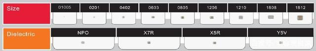 0402規格和0603規格的貼片電容,不同品牌之前沒有差異,國巨、村田、三星、華新科、風華高科、TDK品牌電容都是一樣的標準。如下圖是常用貼片電容材質及封裝大小。