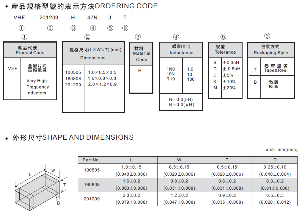 電感范圍:1nH~220nH