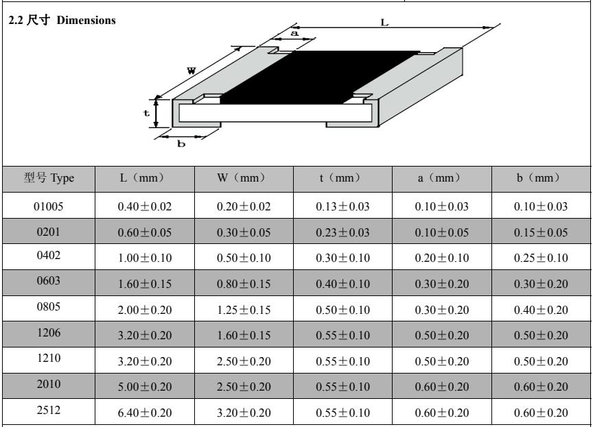 風(fēng)華高科貼片電阻封裝尺寸對照表